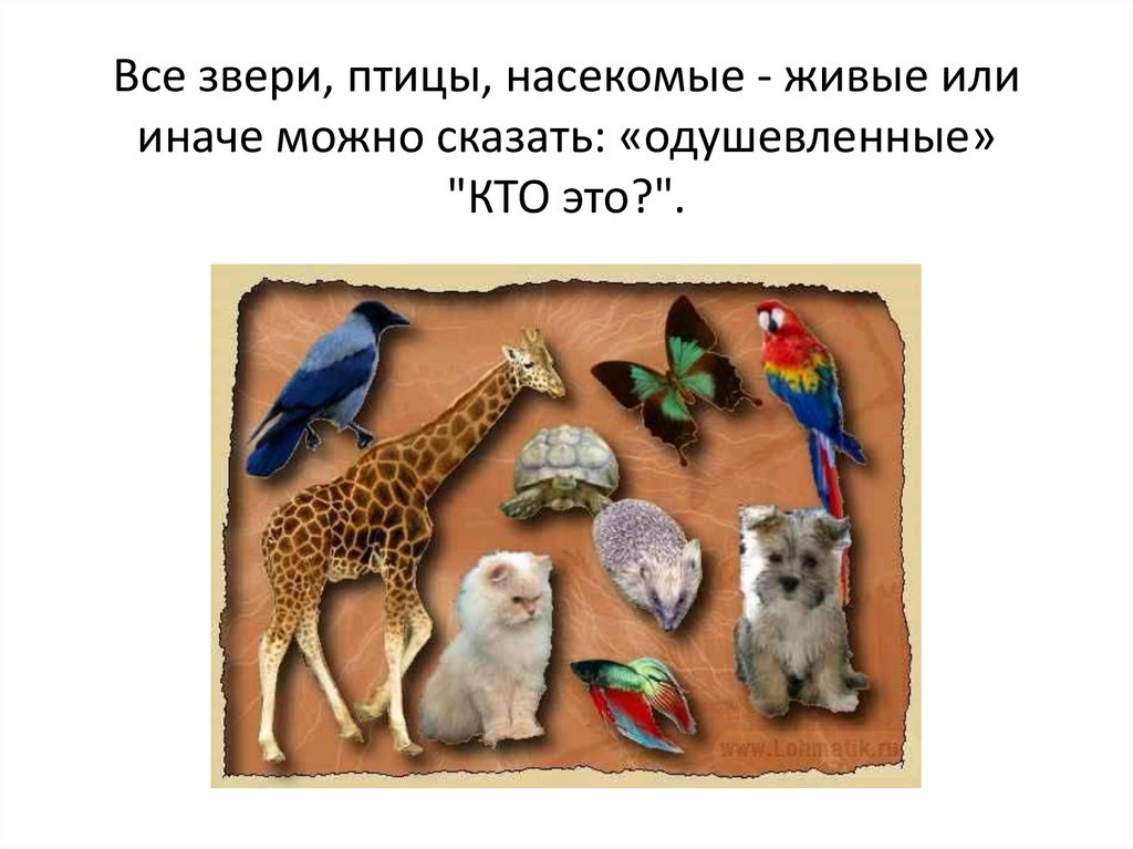 Все звери, птицы, насекомые - живые илииначе можно сказать: «одушевленные»
