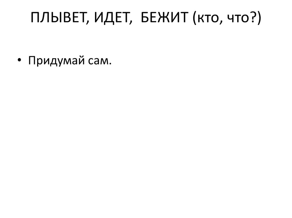 ПЛЫВЕТ, ИДЕТ, БЕЖИТ (кто, что?)• Придумай сам.
