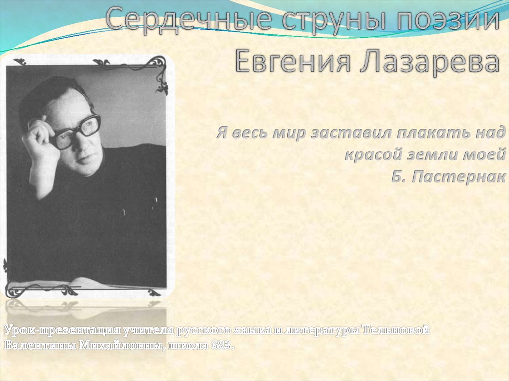 Эти замечательные строки принадлежат перу Евгения Лазарева, поэту,