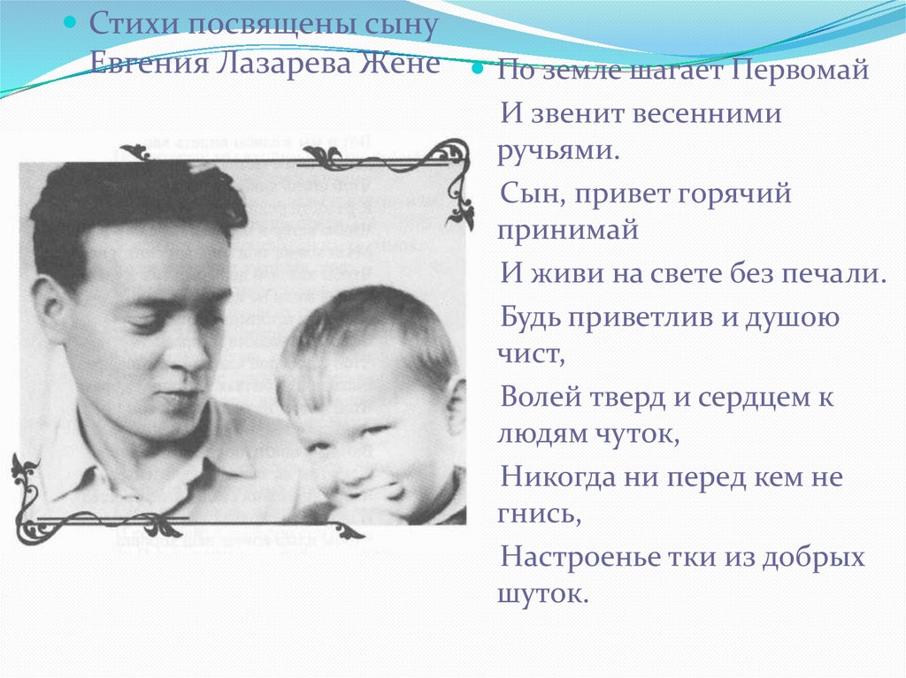 Стихи посвящены сынуЕвгения Лазарева Жене По земле шагает Первомай