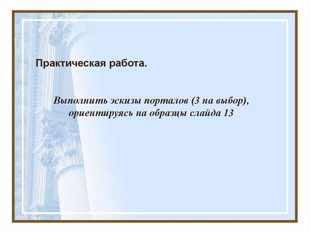 Практическая работа.Выполнить эскизы порталов (3 на выбор),