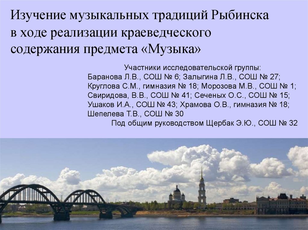 1. Изучение музыкальных традиций Рыбинска в ходе реализации краеведческого содержания предмета «Музыка»