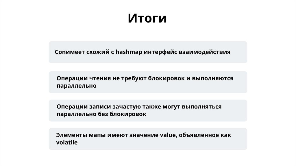 ИтогиConимеет схожий с hashmap интерфейс взаимодействия