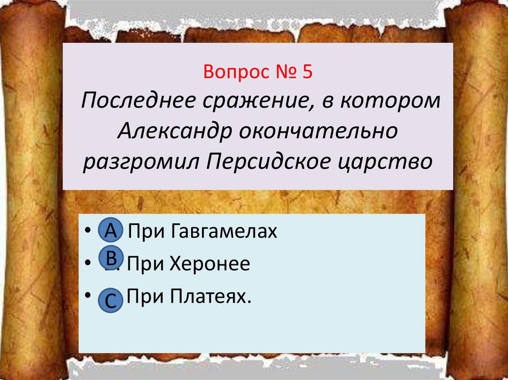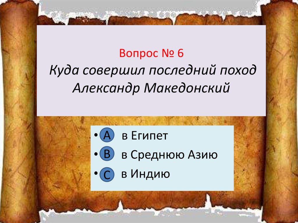 Походы Александра Македонского на Восток. Тест 1. 5 класс