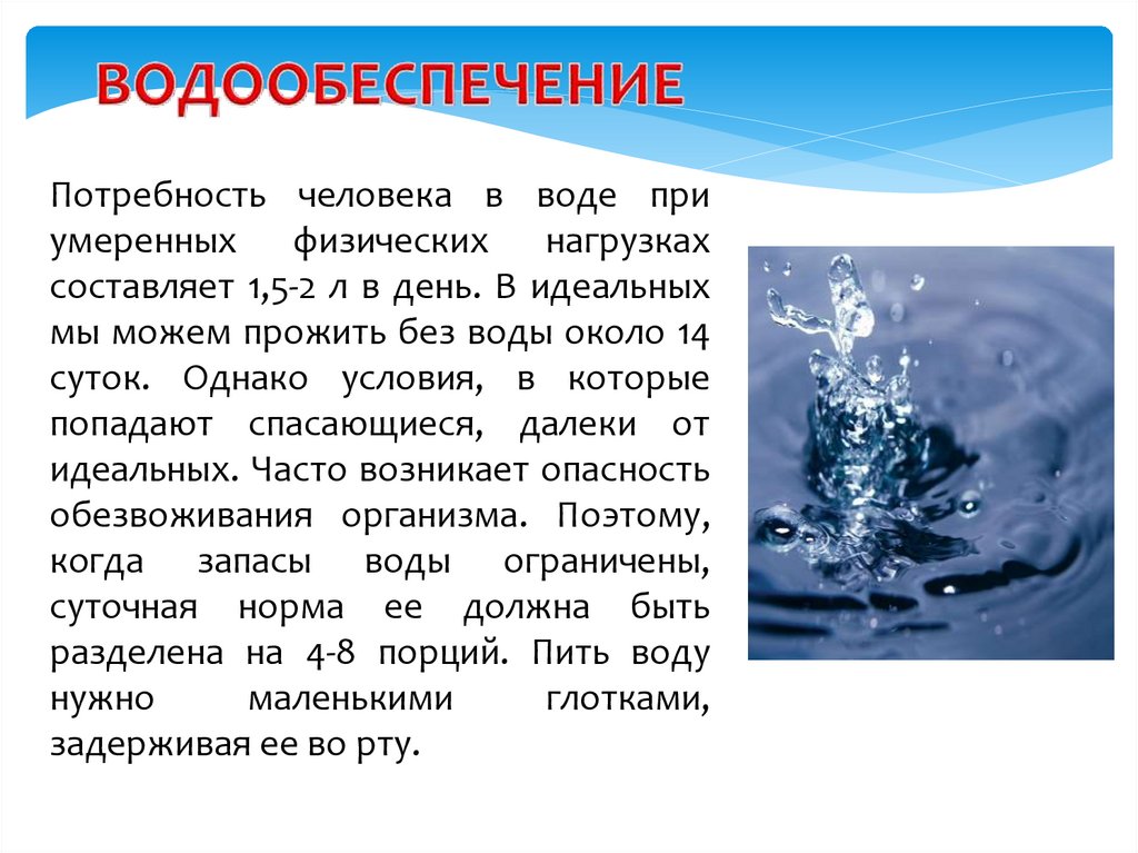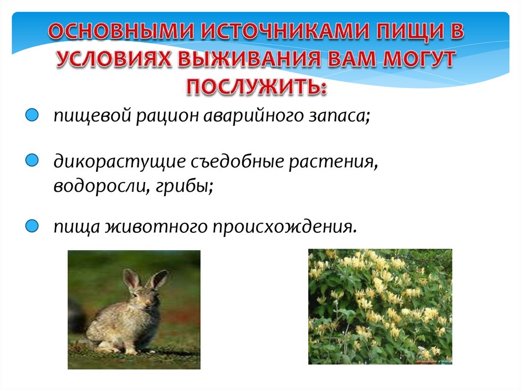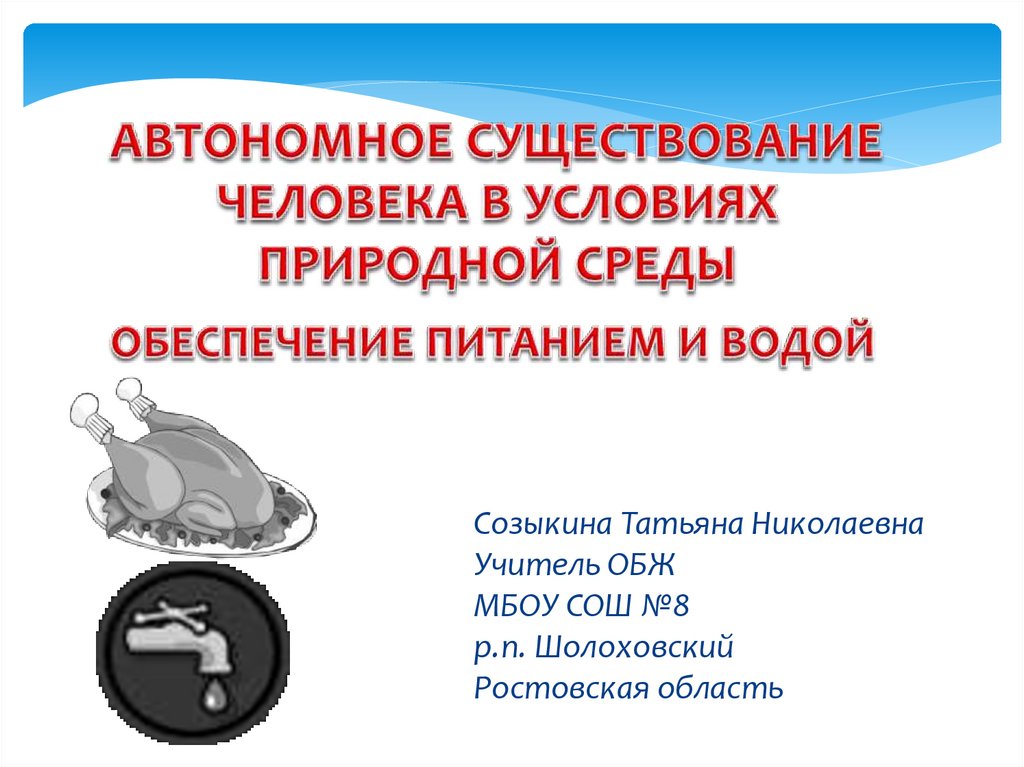 Автономное существование человека в условиях природной среды. Обеспечение питанием и водой