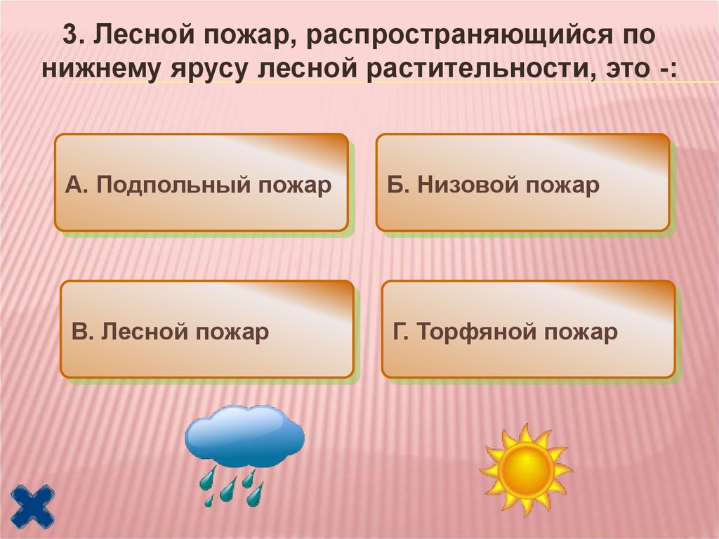 3. Лесной пожар, распространяющийся понижнему ярусу лесной растительности, это -: