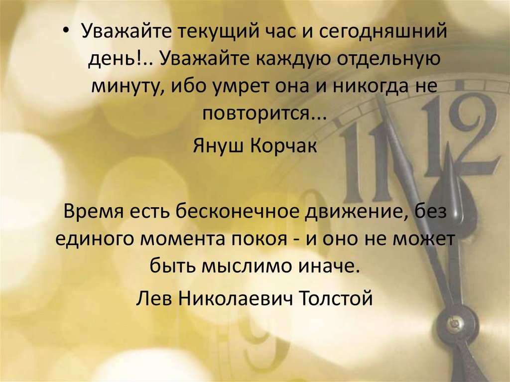 • Уважайте текущий час и сегодняшнийдень!.. Уважайте каждую отдельную