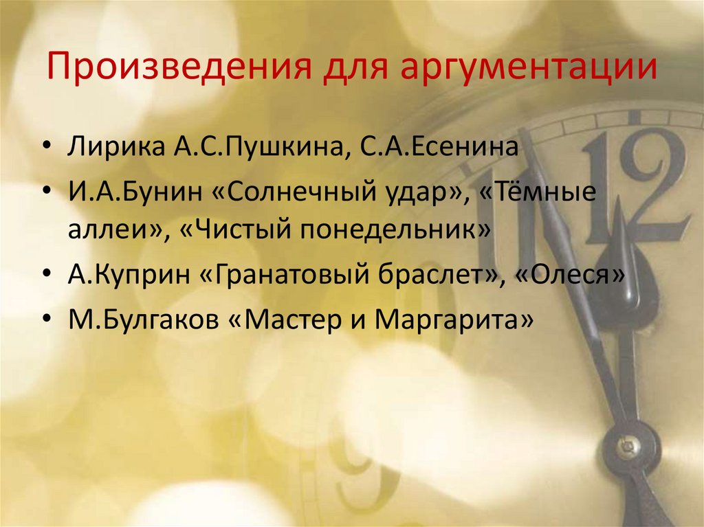 Произведения для аргументации• Лирика А.С.Пушкина, С.А.Есенина