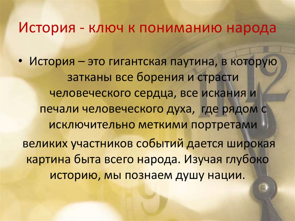 История - ключ к пониманию народа• История – это гигантская паутина, в которую