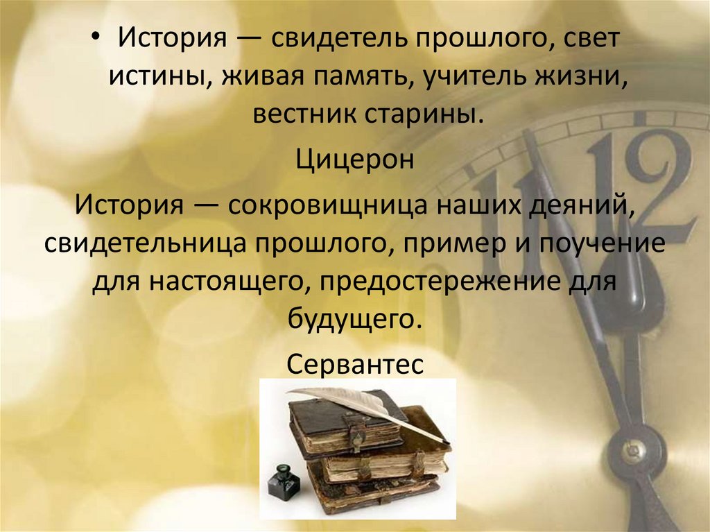 • История — свидетель прошлого, светистины, живая память, учитель жизни,