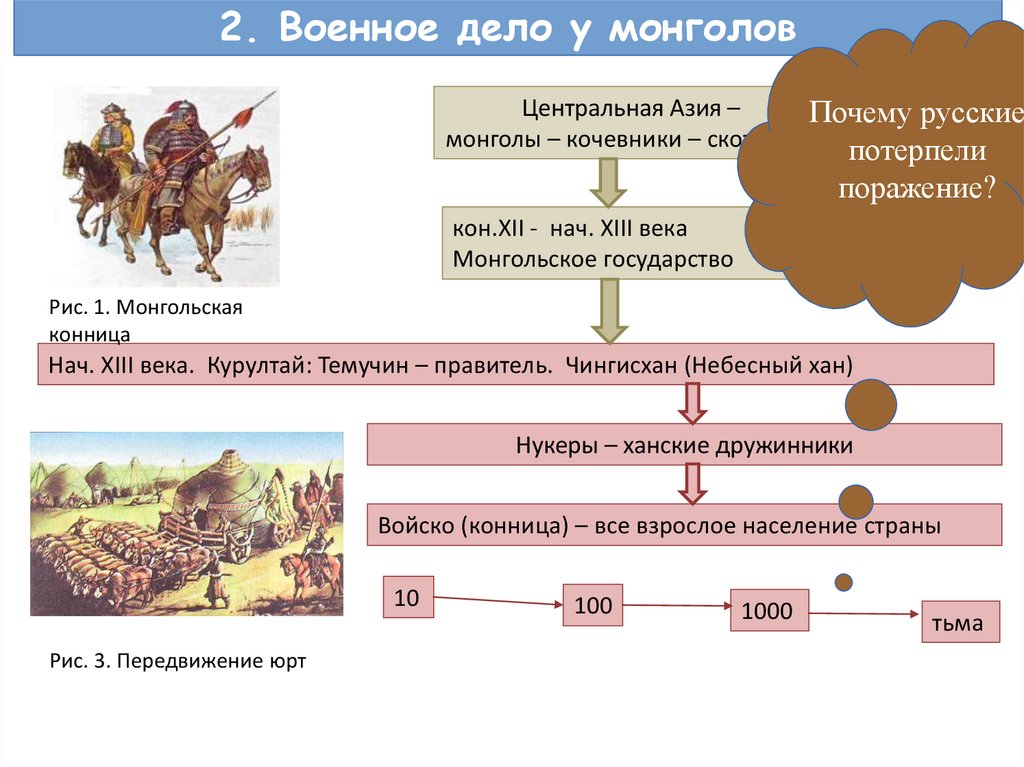 2. В 1223 г. монголы вторглись в Половецкую степь. Русские выступили вместе с