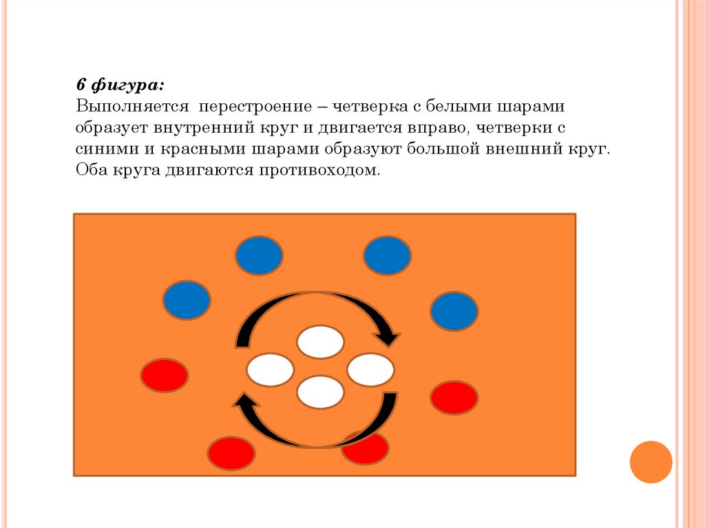 6 фигура:Выполняется перестроение – четверка с белыми шарами
