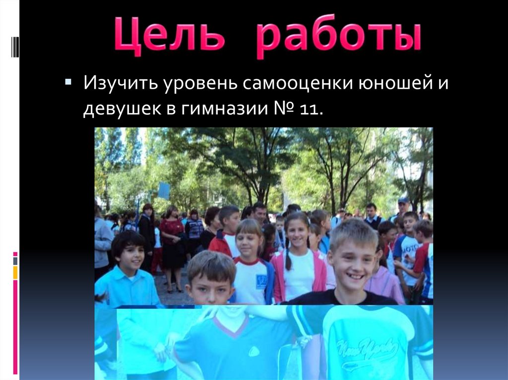 Изучить уровень самооценки юношей идевушек в гимназии № 11.