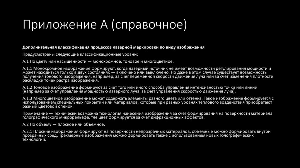 Приложение А (справочное)Дополнительная классификация процессов лазерной маркировки по виду изображения
