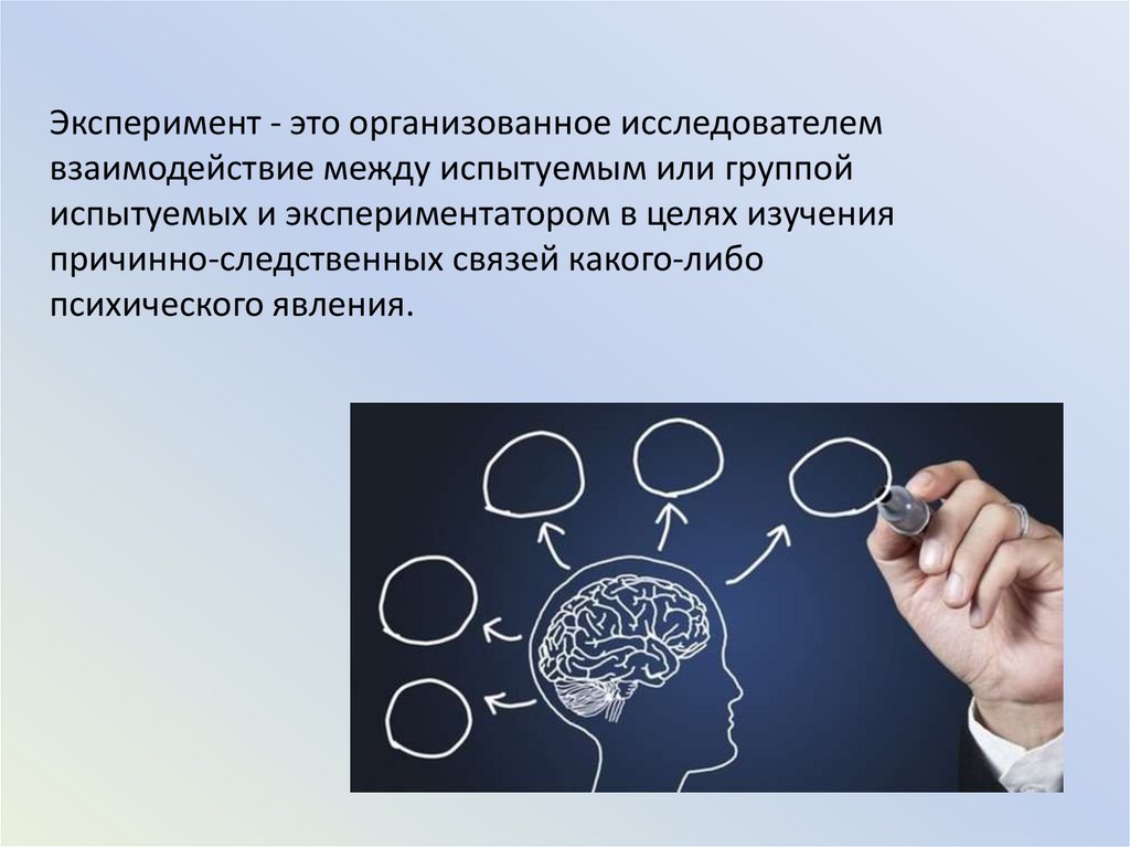 Эксперимент - это организованное исследователемвзаимодействие между испытуемым или группой