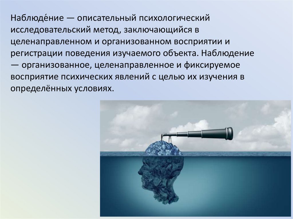 Наблюде́ние — описательный психологическийисследовательский метод, заключающийся в