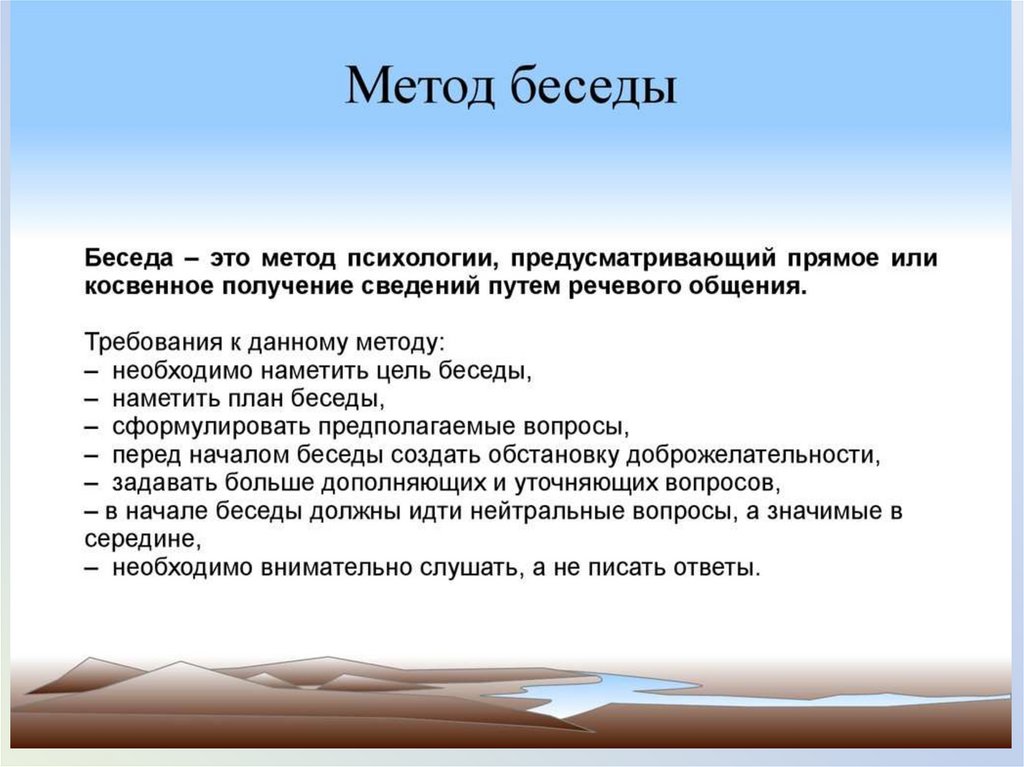 12. 1.1.3 Методы психологии: наблюдение, эксперимент, опрос, тесты, беседа, консультация, психодиагностика, тренинг и др.