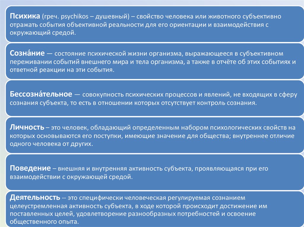 • психика;• сознание;