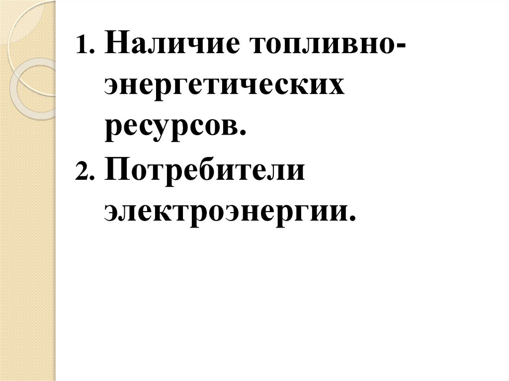 1. Наличие топливно-энергетических