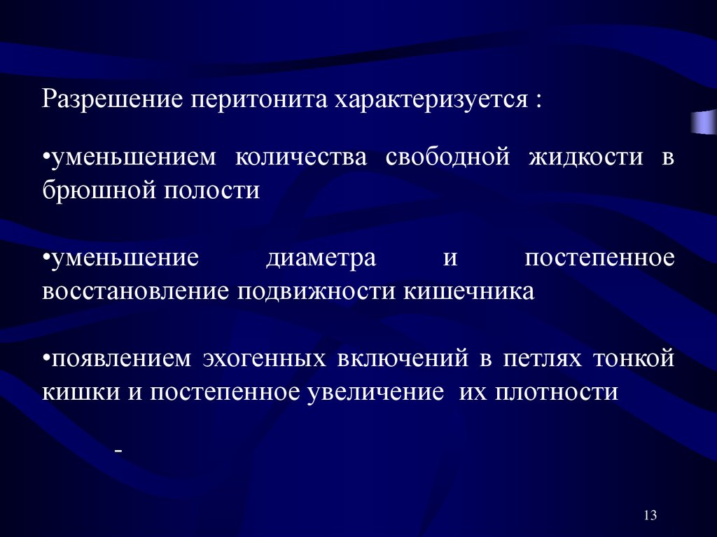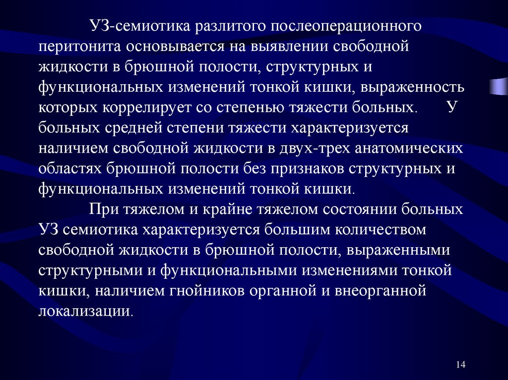 Разлитой послеоперационный перитонитУЗ диагностика основывается на выявлении