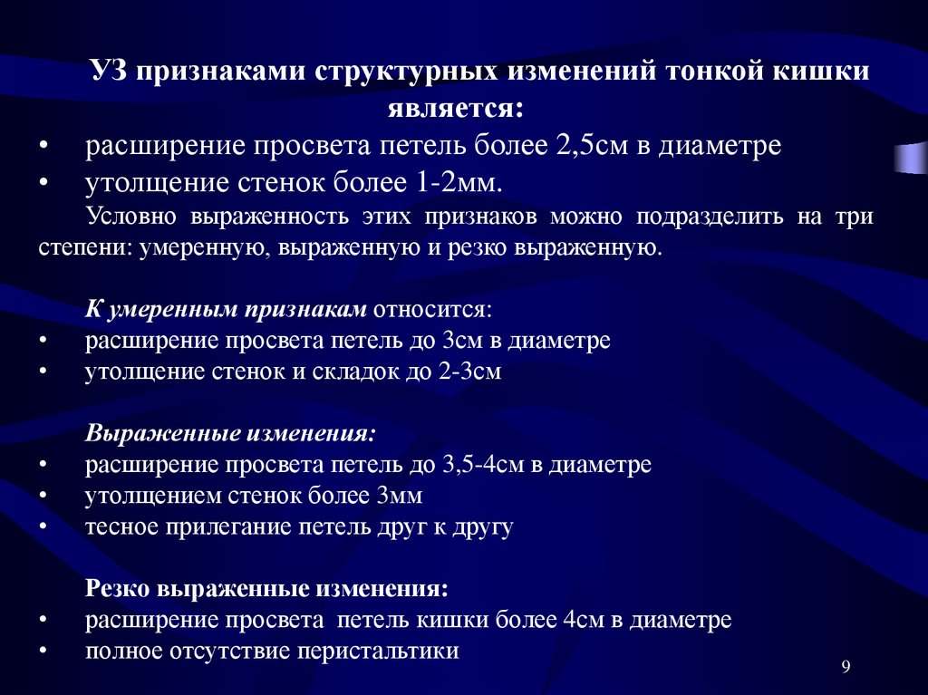 УЗ признаками структурных изменений тонкой кишки
