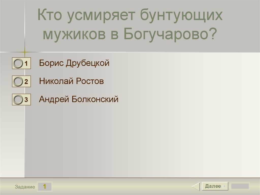 Кто усмиряет бунтующихмужиков в Богучарово?