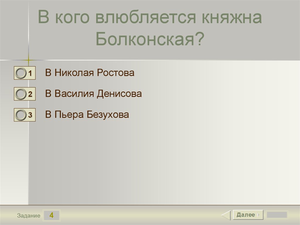В кого влюбляется княжнаБолконская?
