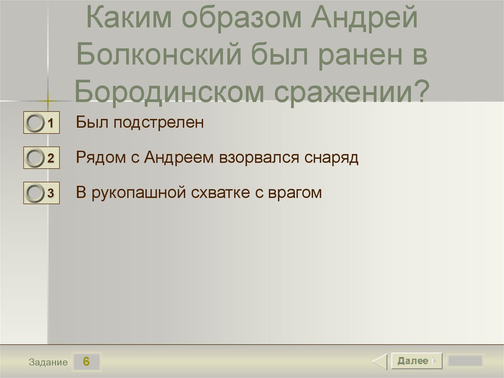 Каким образом АндрейБолконский был ранен в