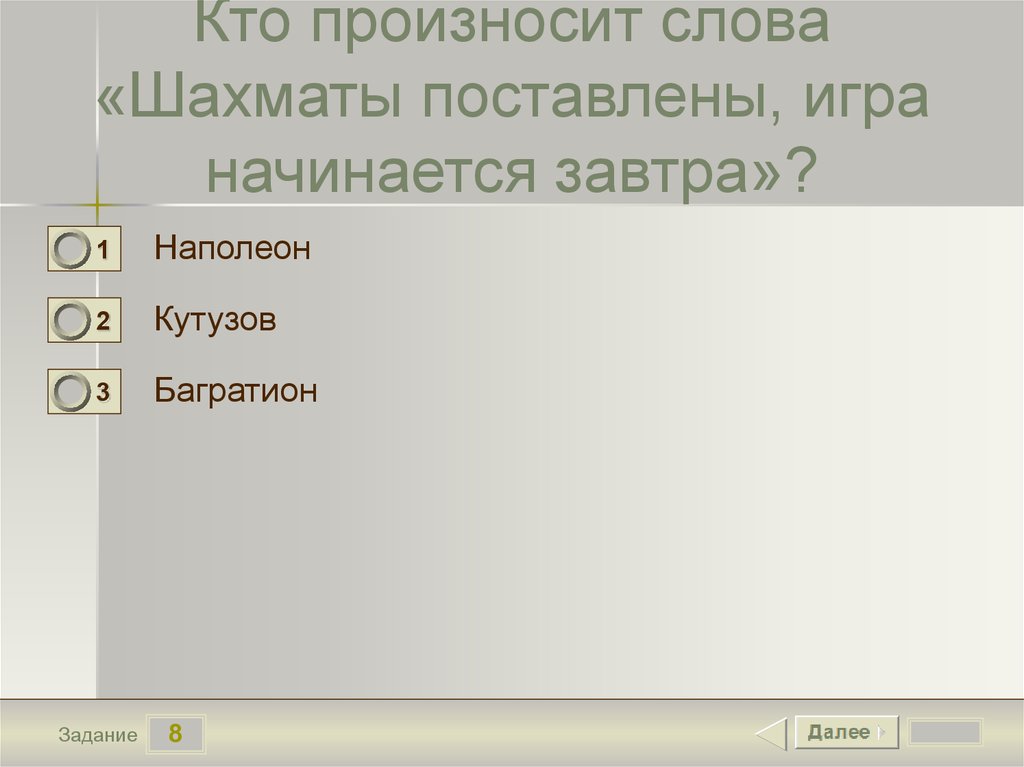 Кто произносит слова«Шахматы поставлены, игра
