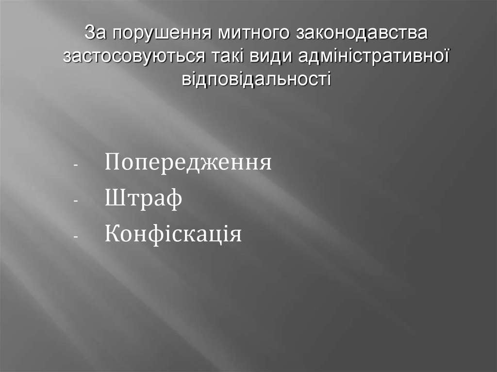 За порушення митного законодавствазастосовуються такі види адміністративної