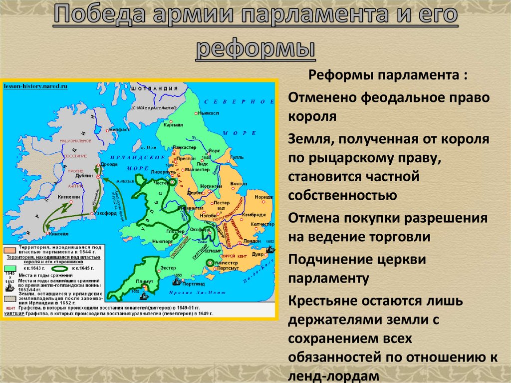 30 января 1649 г. – казнь Карла I.• Май 1649 г. – Англия провозглашена республикой.