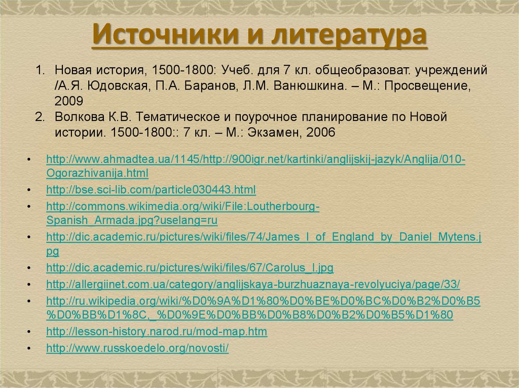 Источники и литература1. Новая история, 1500-1800: Учеб. для 7 кл. общеобразоват. учреждений