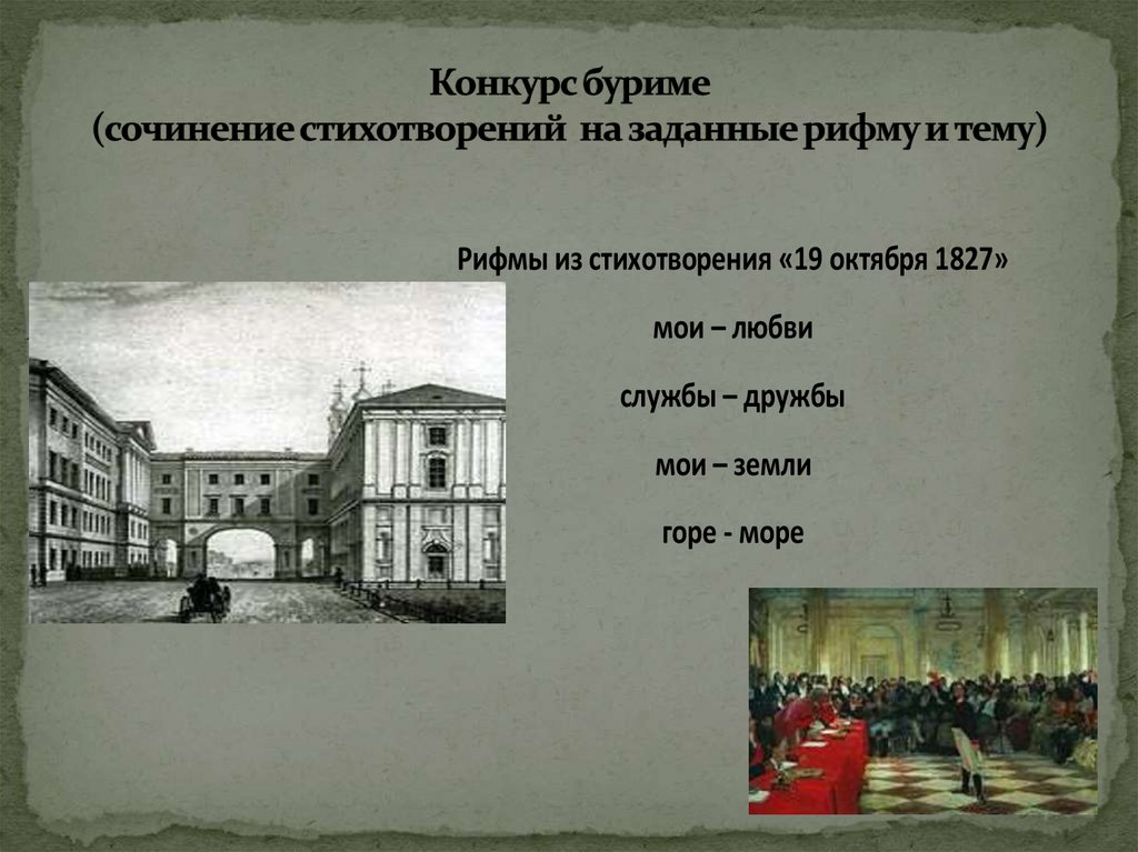 Рифмы из стихотворения «19 октября 1827»мои – любви