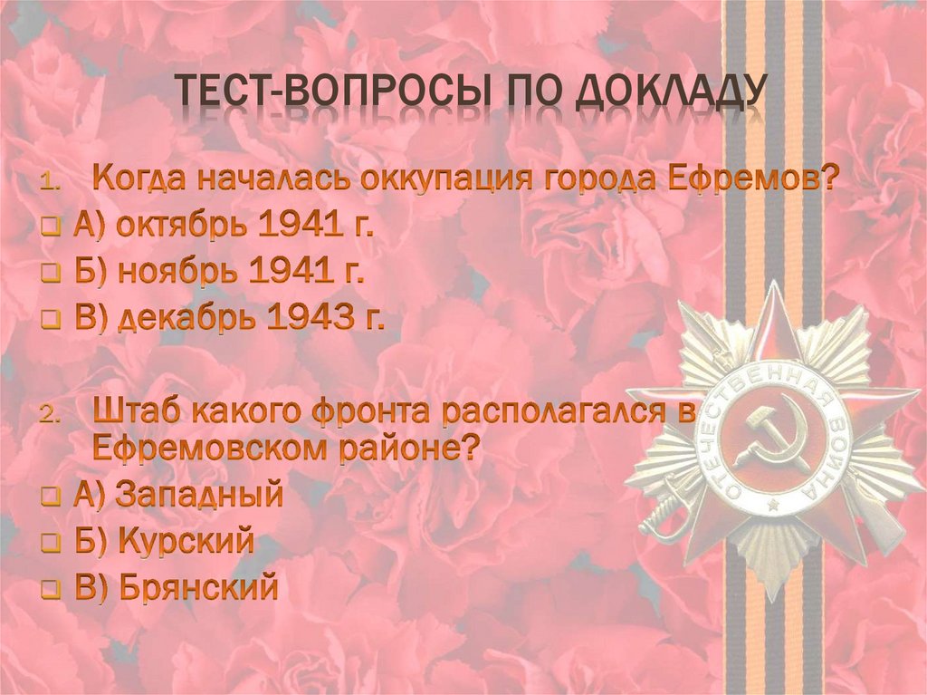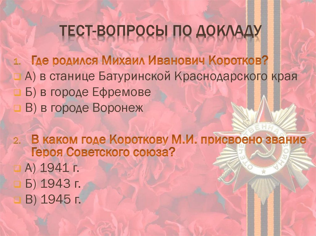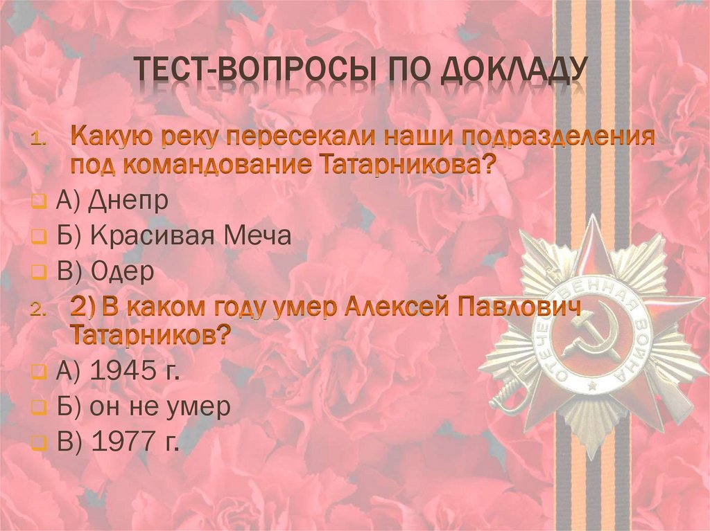 ТЕСТ-ВОПРОСЫ ПО ДОКЛАДУ1.