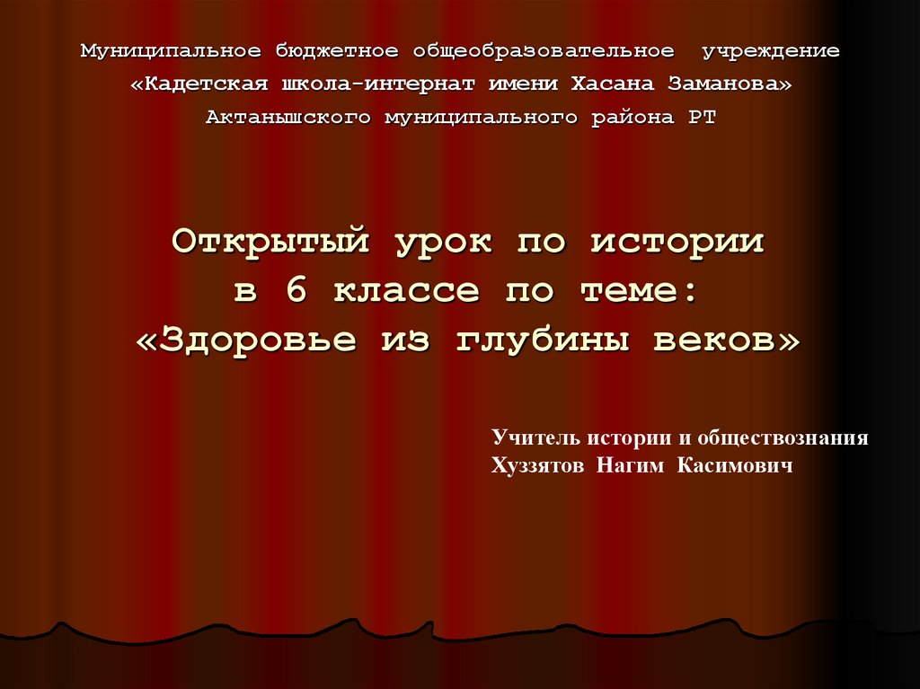 1. Открытый урок по истории в 6 классе по теме: «Здоровье из глубины веков»
