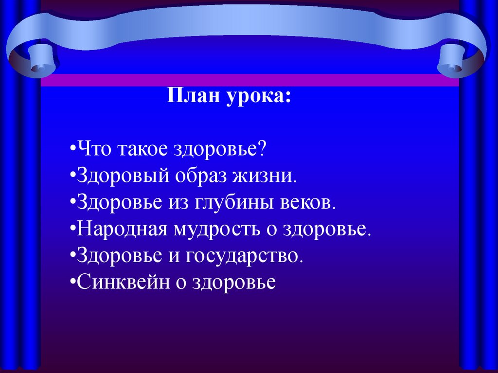 План урока:•Что такое здоровье?