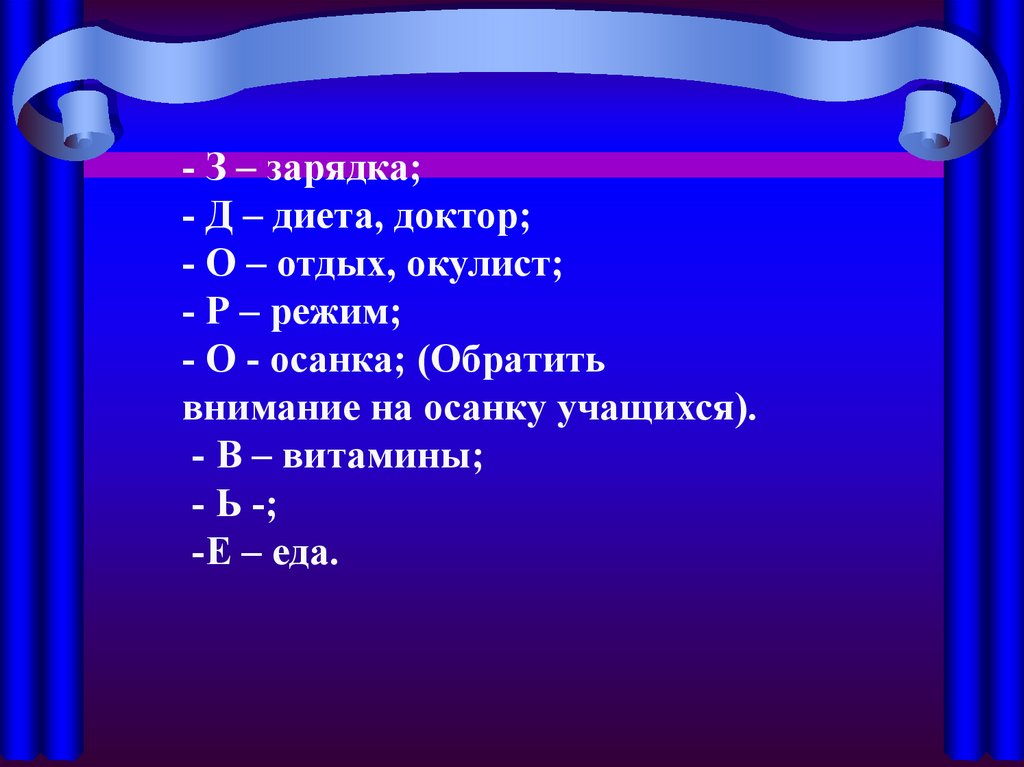 - З – зарядка;- Д – диета, доктор;