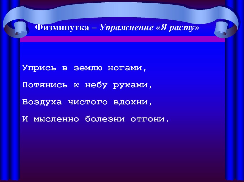 Физминутка – Упражнение «Я расту»Упрись в землю ногами,