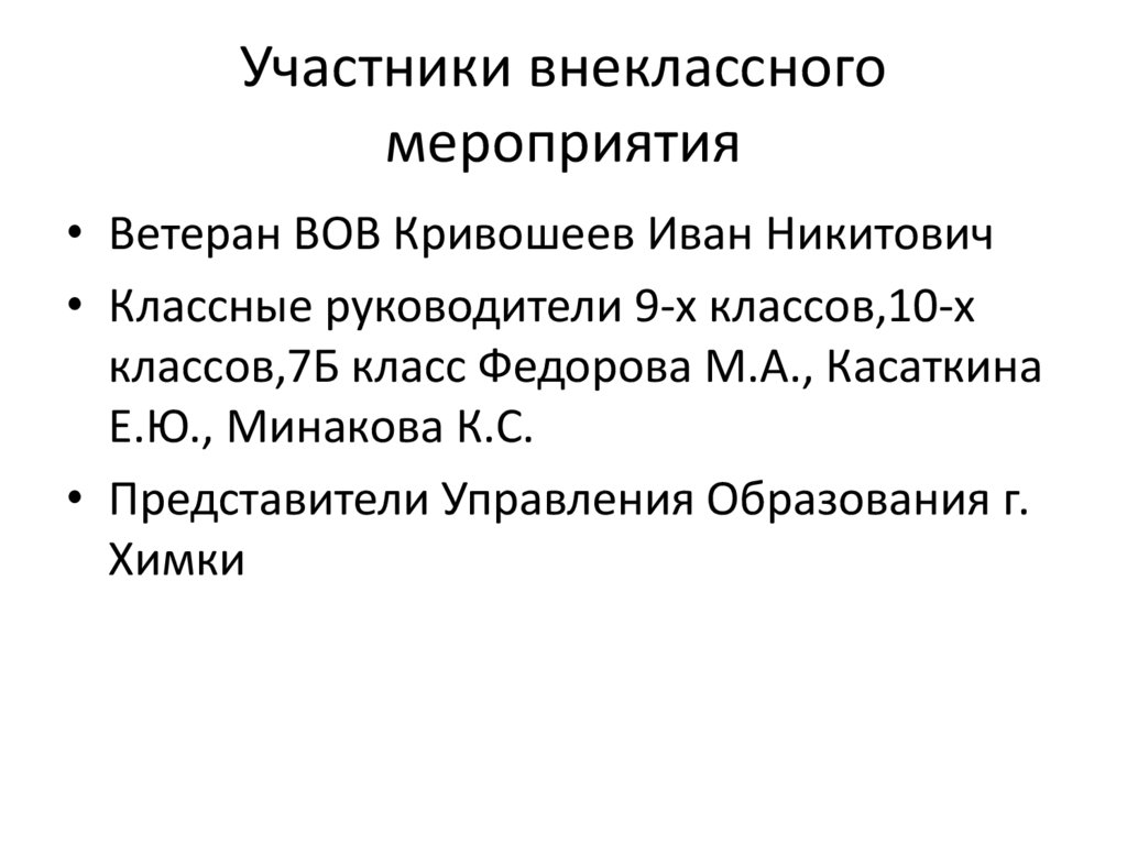 Участники внеклассногомероприятия