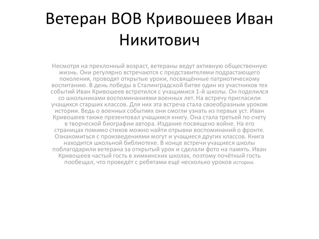 • Ветеран ВОВ Кривошеев Иван Никитович