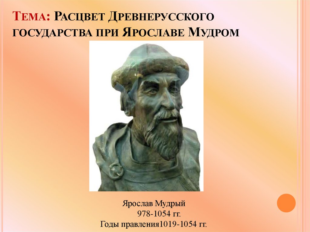 ТЕМА: РАСЦВЕТ ДРЕВНЕРУССКОГОГОСУДАРСТВА ПРИ ЯРОСЛАВЕ МУДРОМ