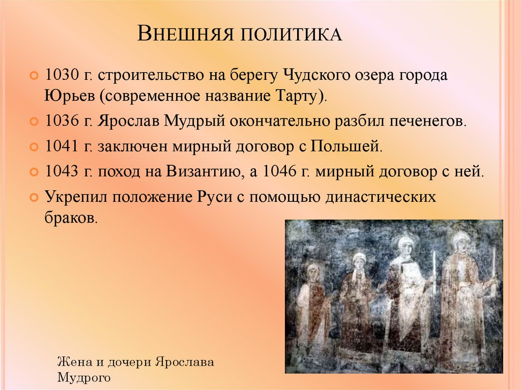 ПРАВЛЕНИЕ ЯРОСЛАВА МУДРОГОВнешняя