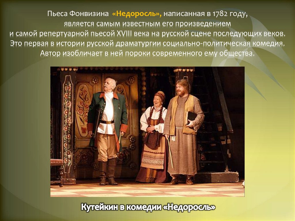 Пьеса Фонвизина «Недоросль», написанная в 1782 году,является самым известным его произведением