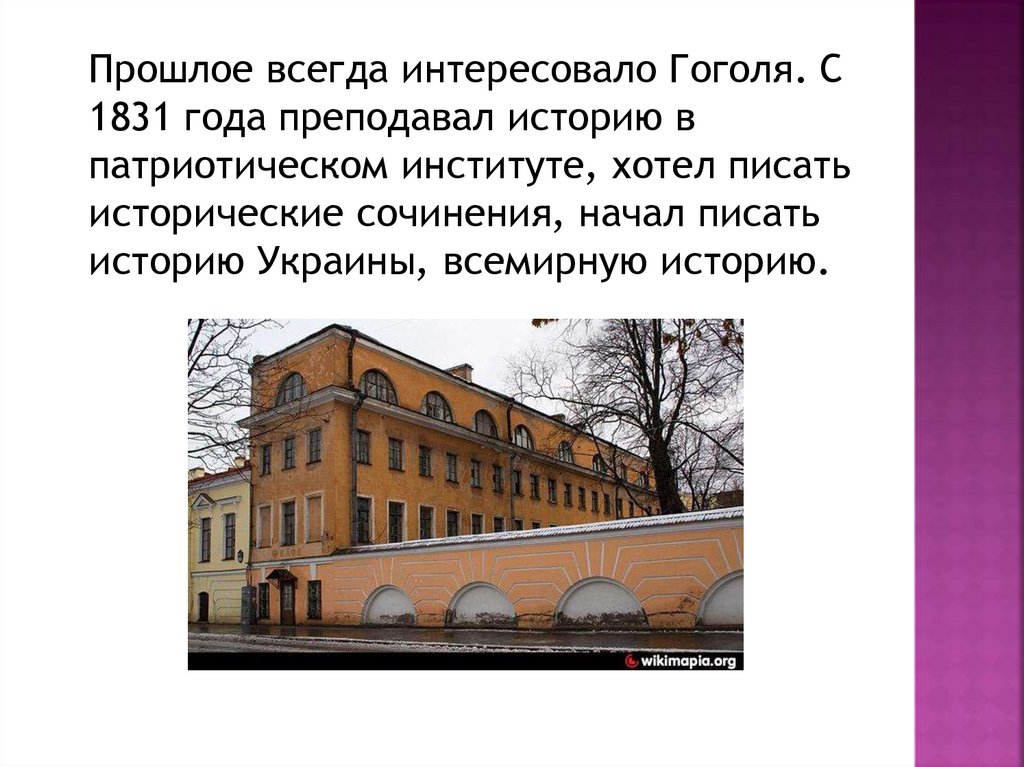 Прошлое всегда интересовало Гоголя. С1831 года преподавал историю в