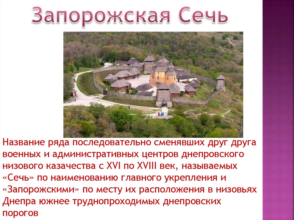 Запорожская Сечь – воплощение свободолюбивогодуха украинского народа, протеста против гнета.