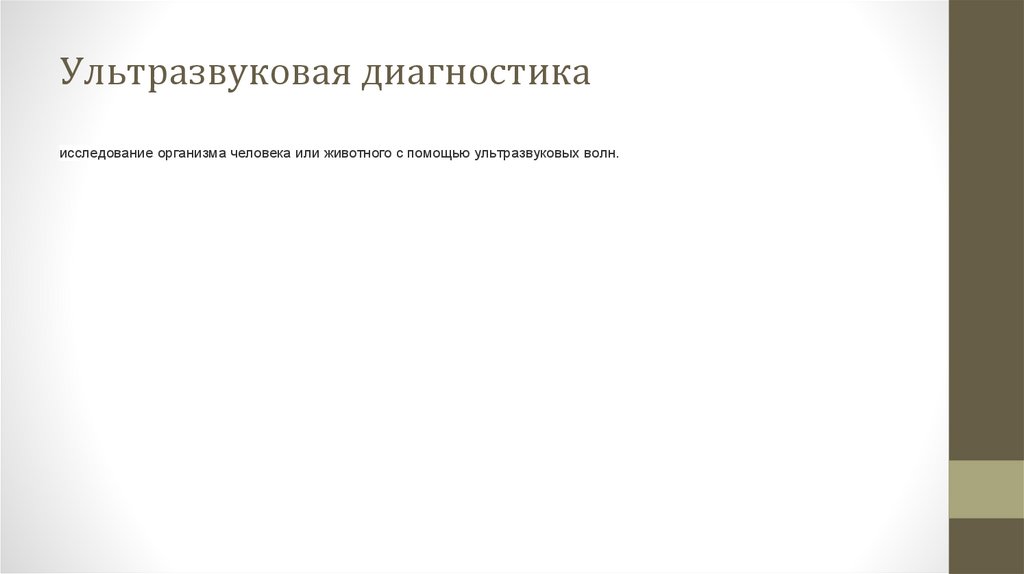 Ультразвуковая диагностикаисследование организма человека или животного с помощью ультразвуковых волн.