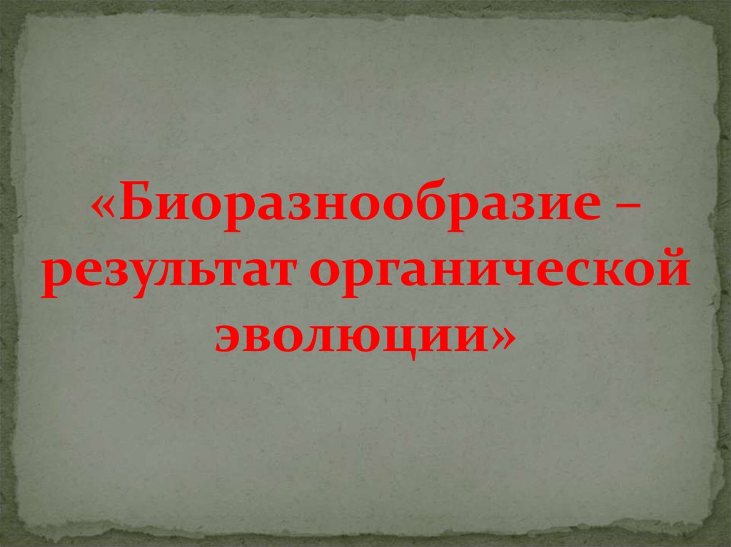 Биоразнообразие – результат органической эволюции