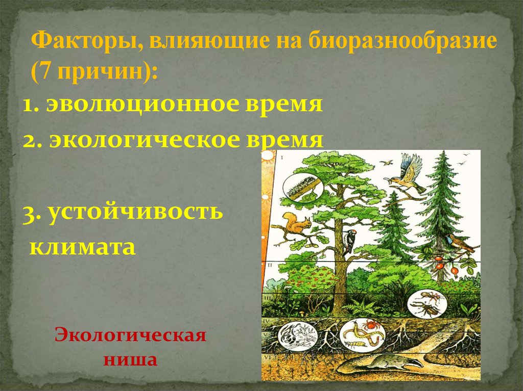 Факторы, влияющие на биоразнообразие(7 причин):