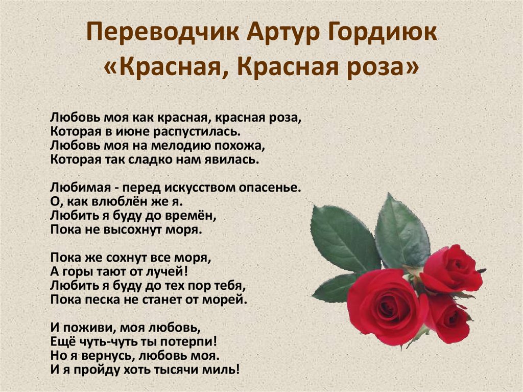 Переводчик Артур Гордиюк«Красная, Красная роза»