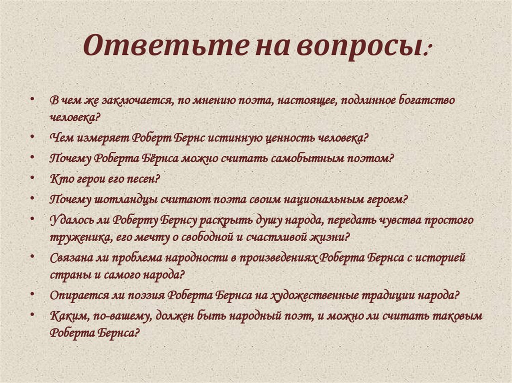 Ответьте на вопросы:• В чем же заключается, по мнению поэта, настоящее, подлинное богатство